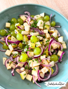 Mein Rezept für diesen Herbstsalat ist eine perfekte Ergänzung zu dieser Jahreszeit. Die süßen Birnen, die saftigen Trauben, der cremige Käse und die würzigen Zwiebeln verleihen diesem Salat eine einzigartige Geschmackskomposition, die jeden Gaumen erfreut. Der Salat schmeckt natürlich auch im Sommer, Frühling und im Winter sehr gut.
