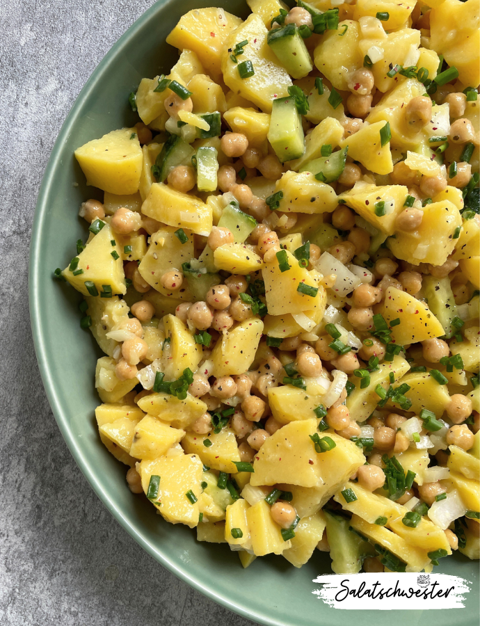 Kartoffelsalat ist ein echter Klassiker der deutschen Küche: Ob zu Grillabenden, Familienfesten oder als schnelles Mittagessen. In dieser Variante bekommt er jedoch einen besonderen Twist: Kichererbsen und Gurke machen ihn nicht nur frischer, sondern auch gesünder und proteinreicher. So wird aus einem einfachen Salat ein sättigendes Gericht, das lange Energie liefert und gleichzeitig leicht bekömmlich ist.